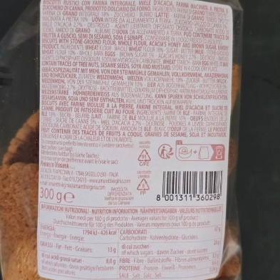Diese rustikalen Kekse werden aus Vollkornmehl und steingemahlenem Mehl hergestellt, um den natürlichen Geschmack und die Qualität des Getreides zu bewahren. Akazienhonig verleiht ihnen eine feine, aromatische Süße, während Rohrohrzucker eine leichte karamellige Note hinzufügt. Das Ergebnis sind knusprige Kekse mit ausgewogenem Geschmack und natürlichem Charakter. Ideal zum Frühstück oder als kleine Pause zwischendurch, besonders passend zu Kaffee, Tee oder Milch.