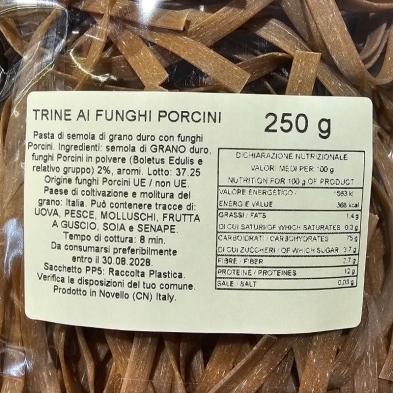 Porcini mushroom fettuccine are an aromatic pasta inspired by the earthy flavors of Italian forests. Made from high-quality durum wheat semolina and enriched with finely ground porcini mushrooms, they offer a deep, well-balanced mushroom aroma evenly infused throughout the pasta. Perfect with butter, cream, mild cheeses, or light sauces, they deliver an elegant and authentic gourmet experience.