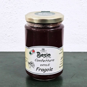 Extra strawberry jam, crafted to highlight the natural sweetness and intense aroma of ripe fruit.