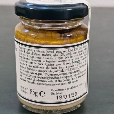 It is a sauce made from a base of pickled artichokes which are then whipped to a cream with dried fruit, oil and garlic.