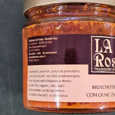 È certamente ricca, come dice già il nome, questa salsa per bruschette e per condire: peperoni, polpa di pomodoro, pomodori secchi, capperi, aglio e soprattutto le olive taggiasche, che con il loro sapore caratteristico impreziosiscono e rendono rotondo e completo il gusto di questo squisito condimento.